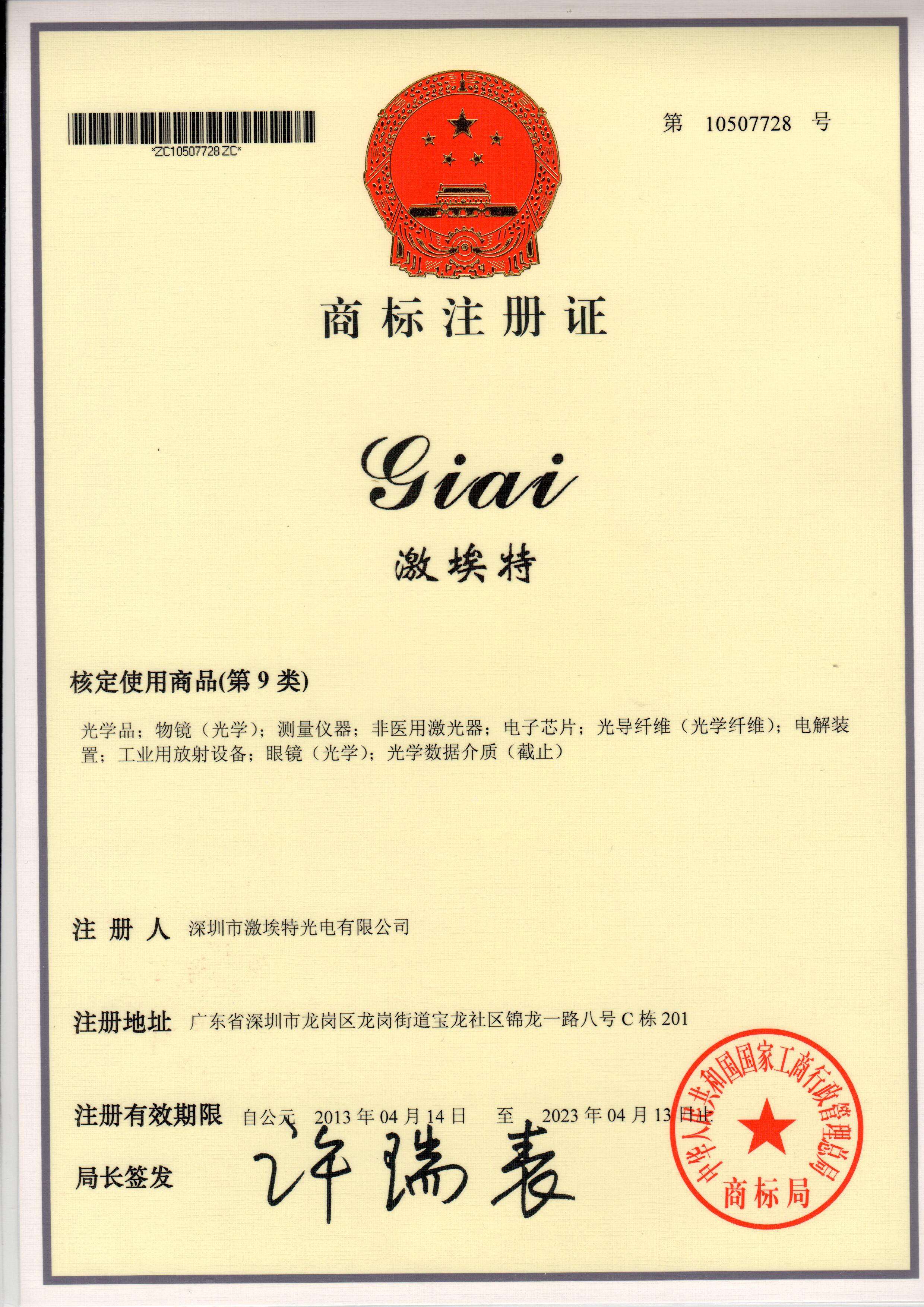 商標(biāo)注冊(cè)證