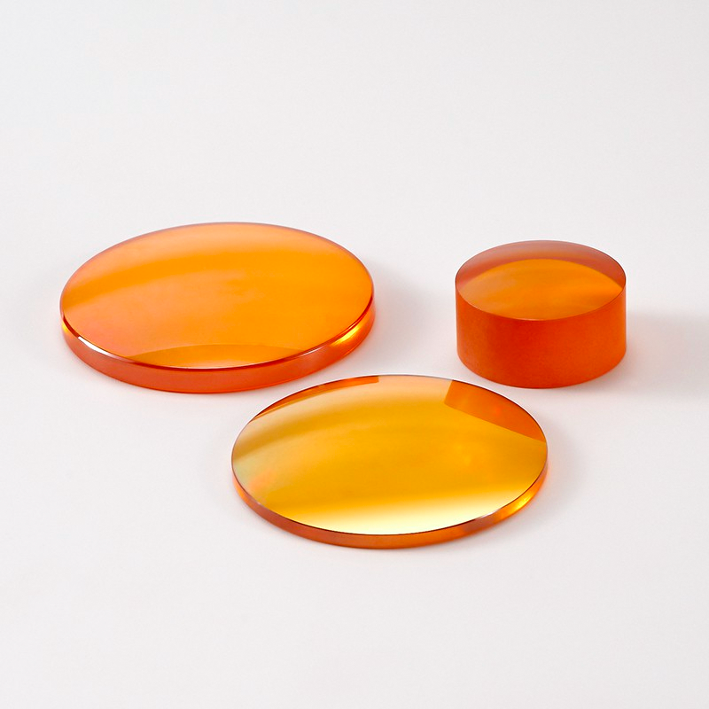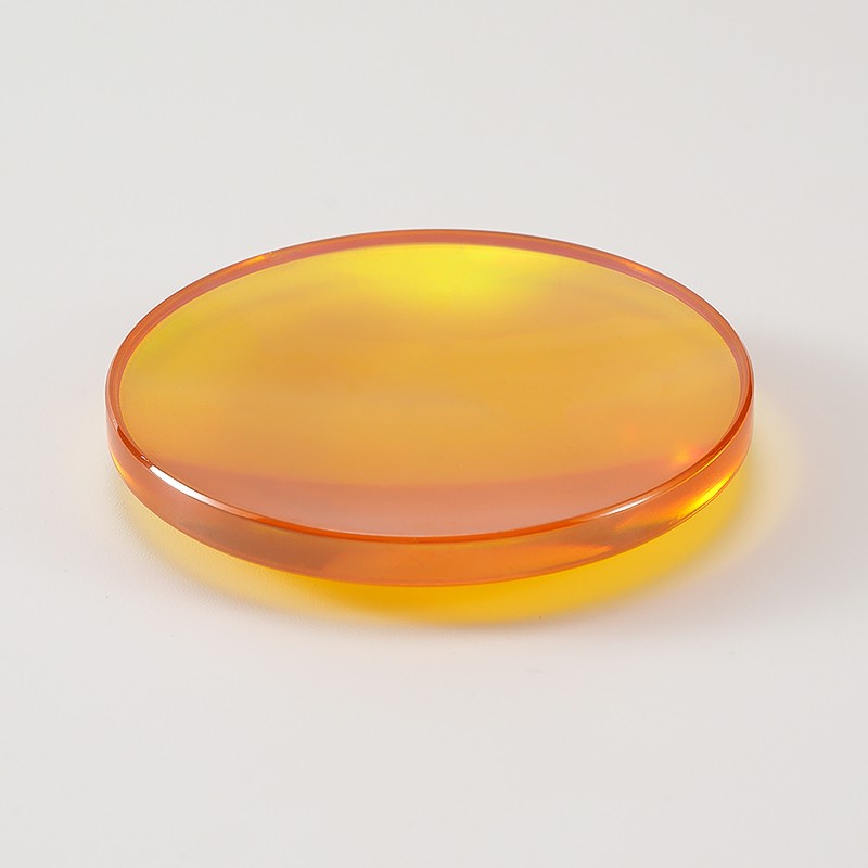 硒化鋅材料是一種黃色透明的多晶材料, 結(jié)晶顆粒大小約為70μm, 透光范圍0.5-15μm。由化學(xué)氣相沉積(CVD)方法合成的基本不存在雜質(zhì)吸收, 散射損失極低。由于對(duì)10.6μm波長(zhǎng)光的吸收很小, 因此成為制作高功率CO2激光器系統(tǒng)中光學(xué)器件的材料。 此外在其整個(gè)透光波段內(nèi), 也是在不同光學(xué)系統(tǒng)中所普遍使用的材料。硒化鋅材料對(duì)熱沖擊具有很高的承受能力, 使它成為高功率CO2激光器系統(tǒng)中的光學(xué)材料。硬度只是多光譜級(jí)ZnS的2/3, 材質(zhì)較軟易產(chǎn)生劃痕, 而且材料折射率較大, 所以需要在其表面鍍制高硬度減反射膜來(lái)加以保護(hù)并獲得較高的透過(guò)率。在其常用光譜范圍內(nèi), 散射很低。在用做高功率激光器件時(shí), 需要嚴(yán)格控制材料的體吸收和內(nèi)部結(jié)構(gòu)缺陷, 并采用最小破壞程度的拋光技術(shù)和光學(xué)質(zhì)量的鍍膜工藝。